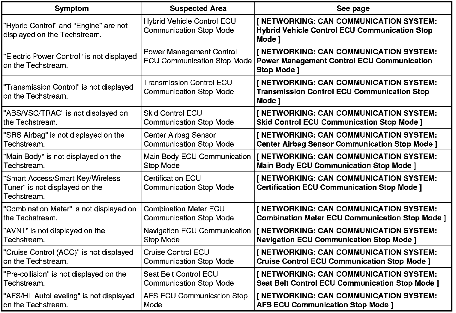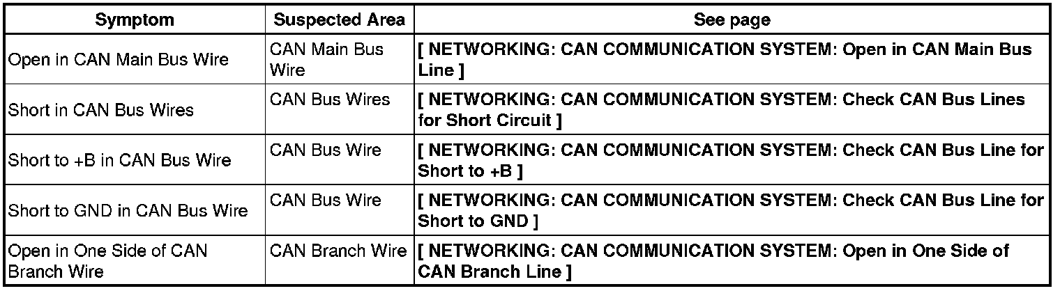 NETWORKING: CAN COMMUNICATION SYSTEM: PROBLEM SYMPTOMS TABLE