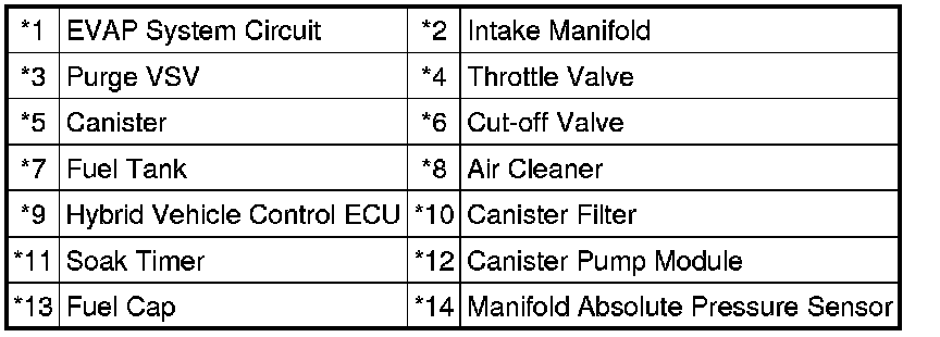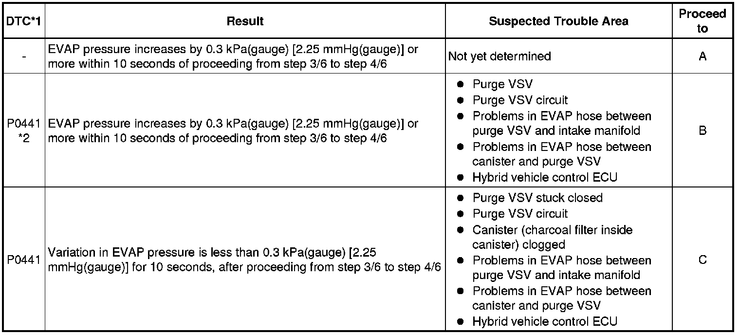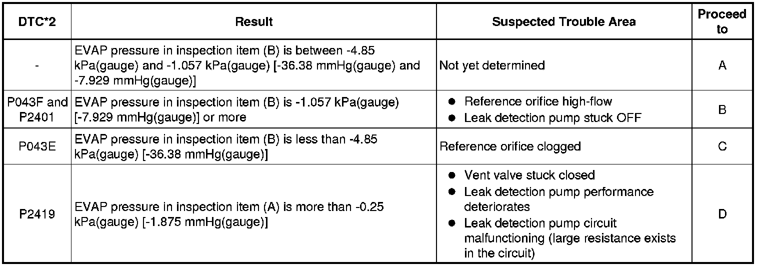* *2: This result suggests that due to purge line blockage or purge VSV malfunction, the DTC was stored by the purge flow monitor while the engine was running, or that key-off monitor test result were nearly borderline values.