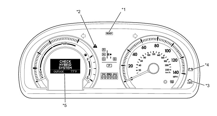 (a) If one of the warning lights (2) to (4) illuminates, connect the Techstream to the DLC3 to check the DTCs (Diagnostic Trouble Codes). Then, refer to the applicable troubleshooting steps in this manual to inspect and repair the affected area. The foregoing actions are also required if the READY light does not illuminate when attempting to turn the power switch on (READY).