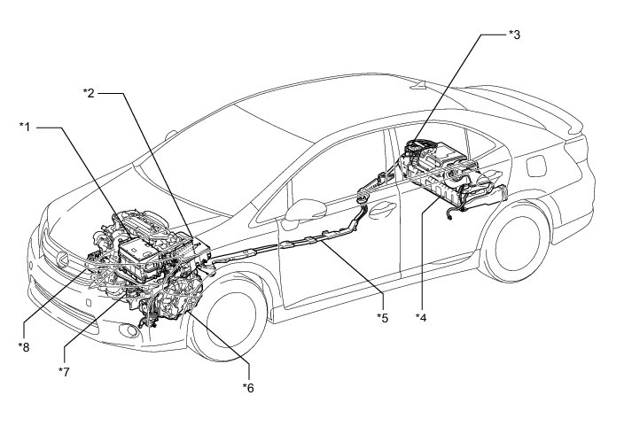 * Visually check the HV battery and the immediate area for any electrolyte leakage. Do not touch any leaked liquid because it could be highly alkaline electrolyte.