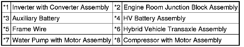 * After removing the HV battery, keep it away from water. Water may heat the battery, resulting in a fire.
