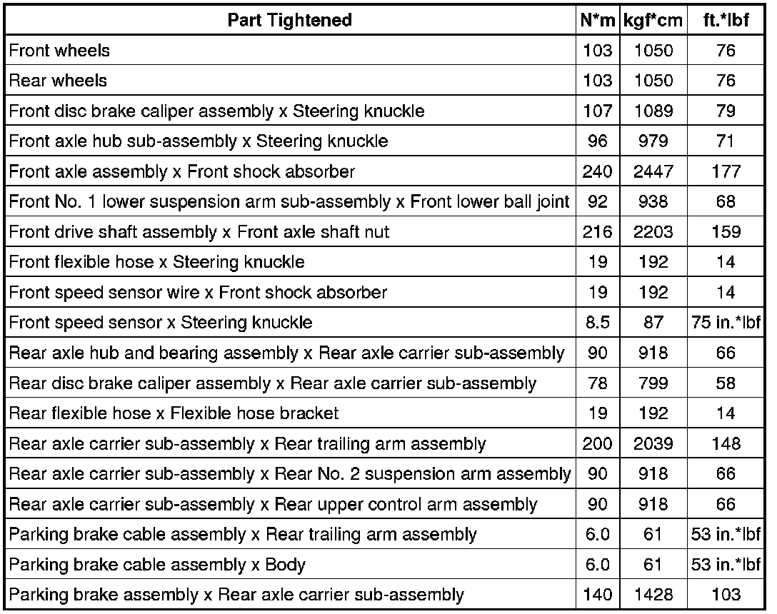 SPECIFICATIONS: AXLE AND DIFFERENTIAL: TORQUE SPECIFICATIONS