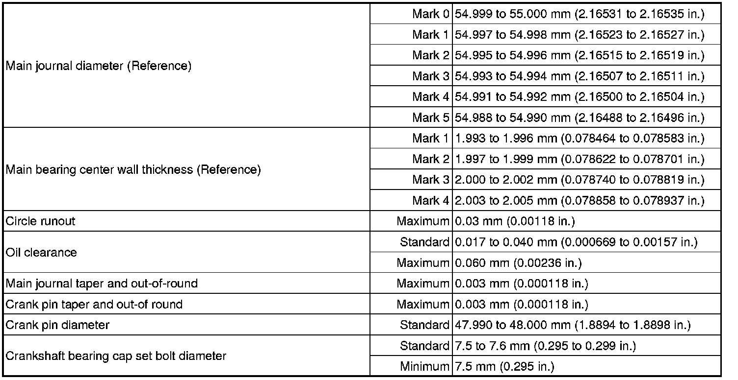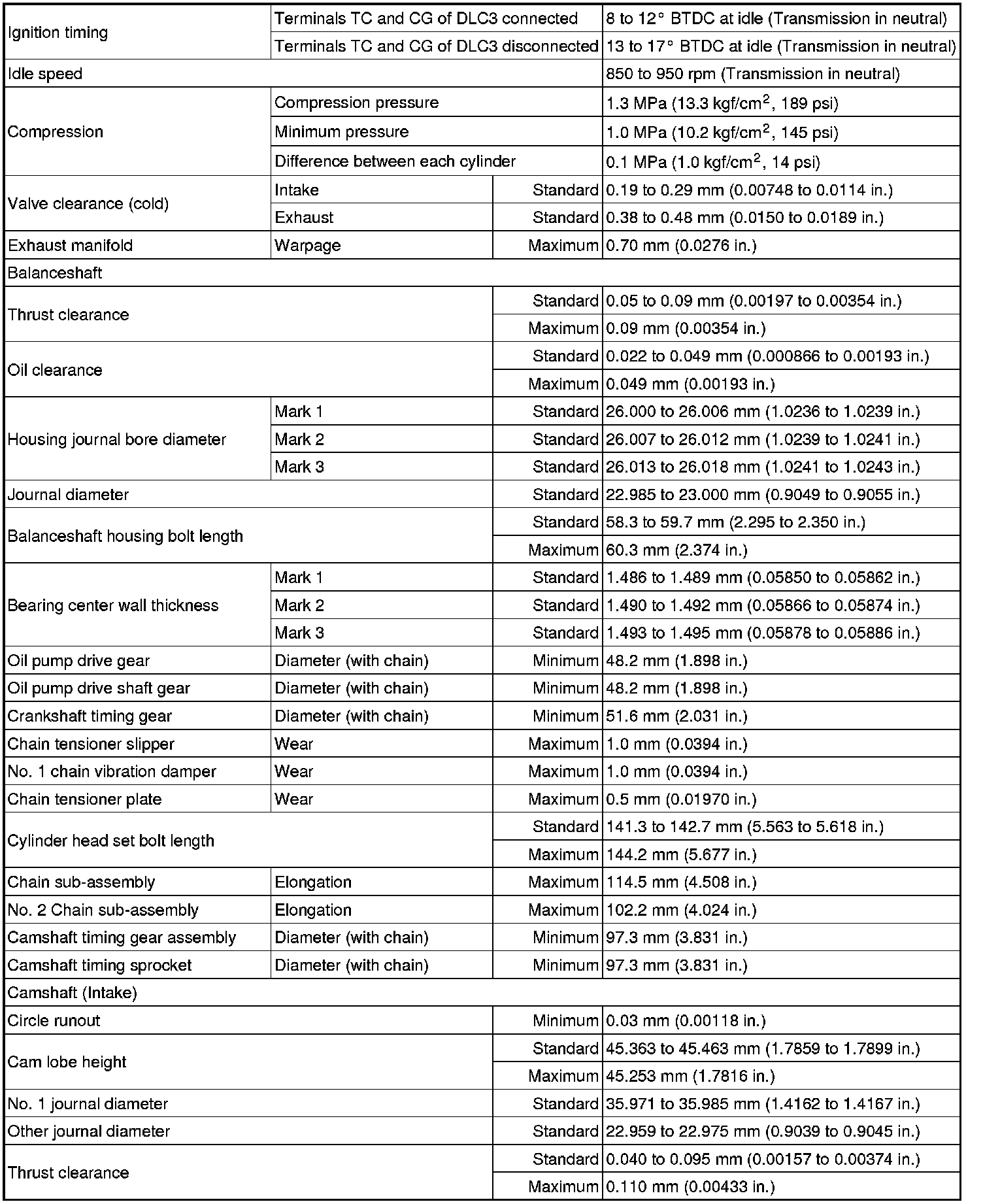 SPECIFICATIONS: 2AZ-FXE ENGINE MECHANICAL: SERVICE DATA