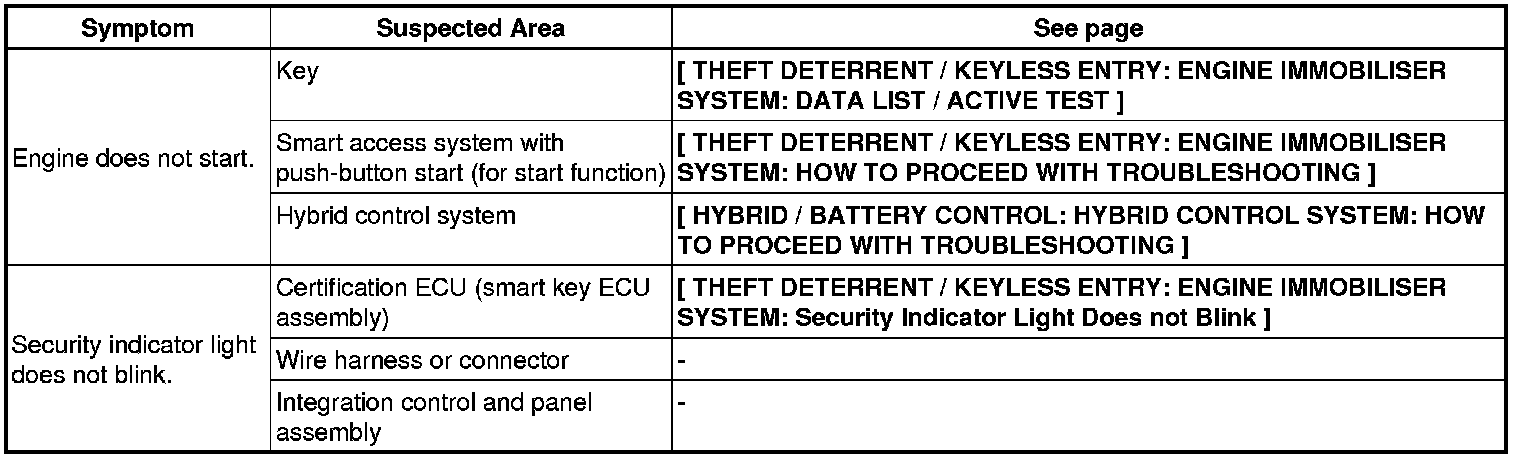 THEFT DETERRENT / KEYLESS ENTRY: ENGINE IMMOBILISER SYSTEM: PROBLEM SYMPTOMS TABLE