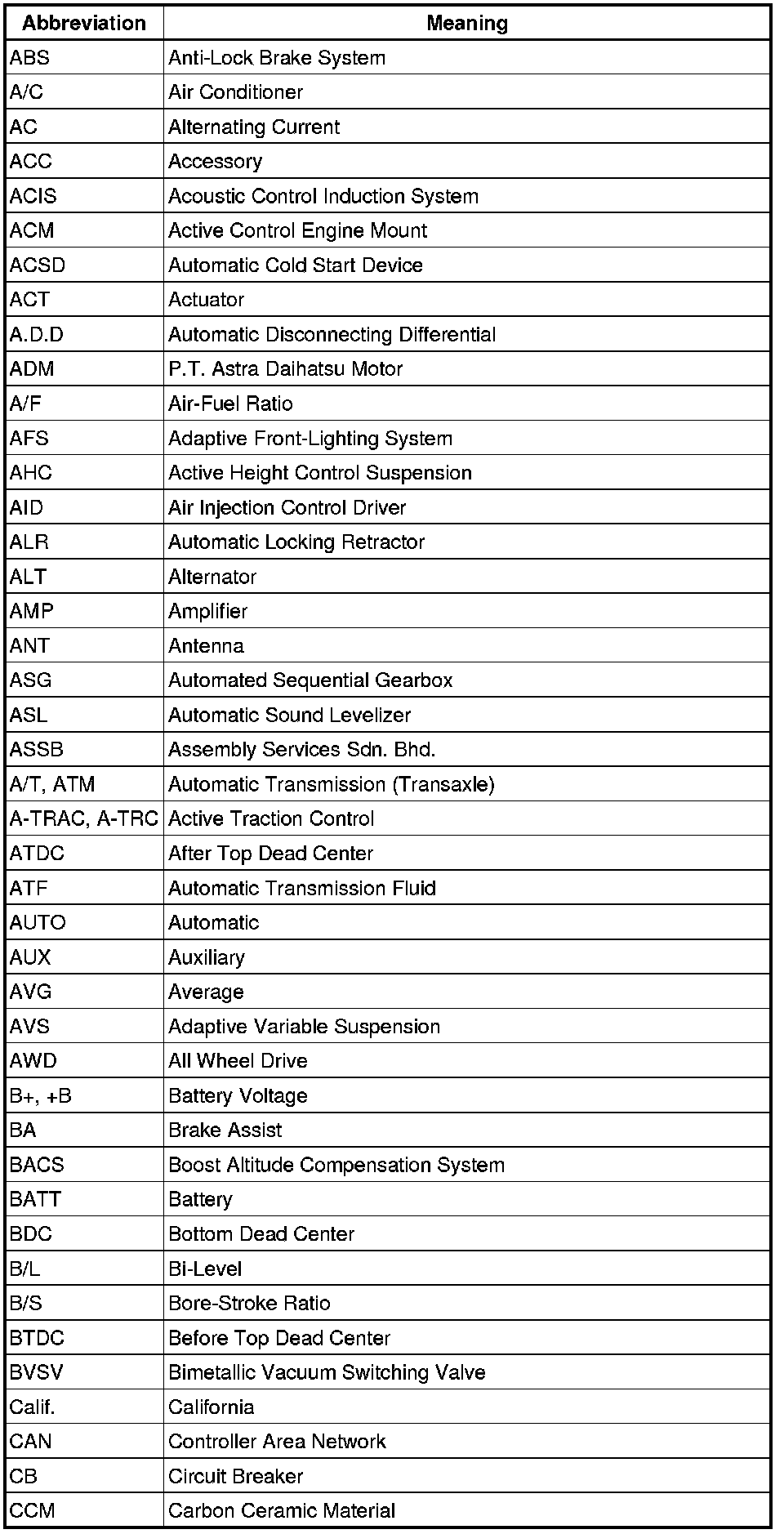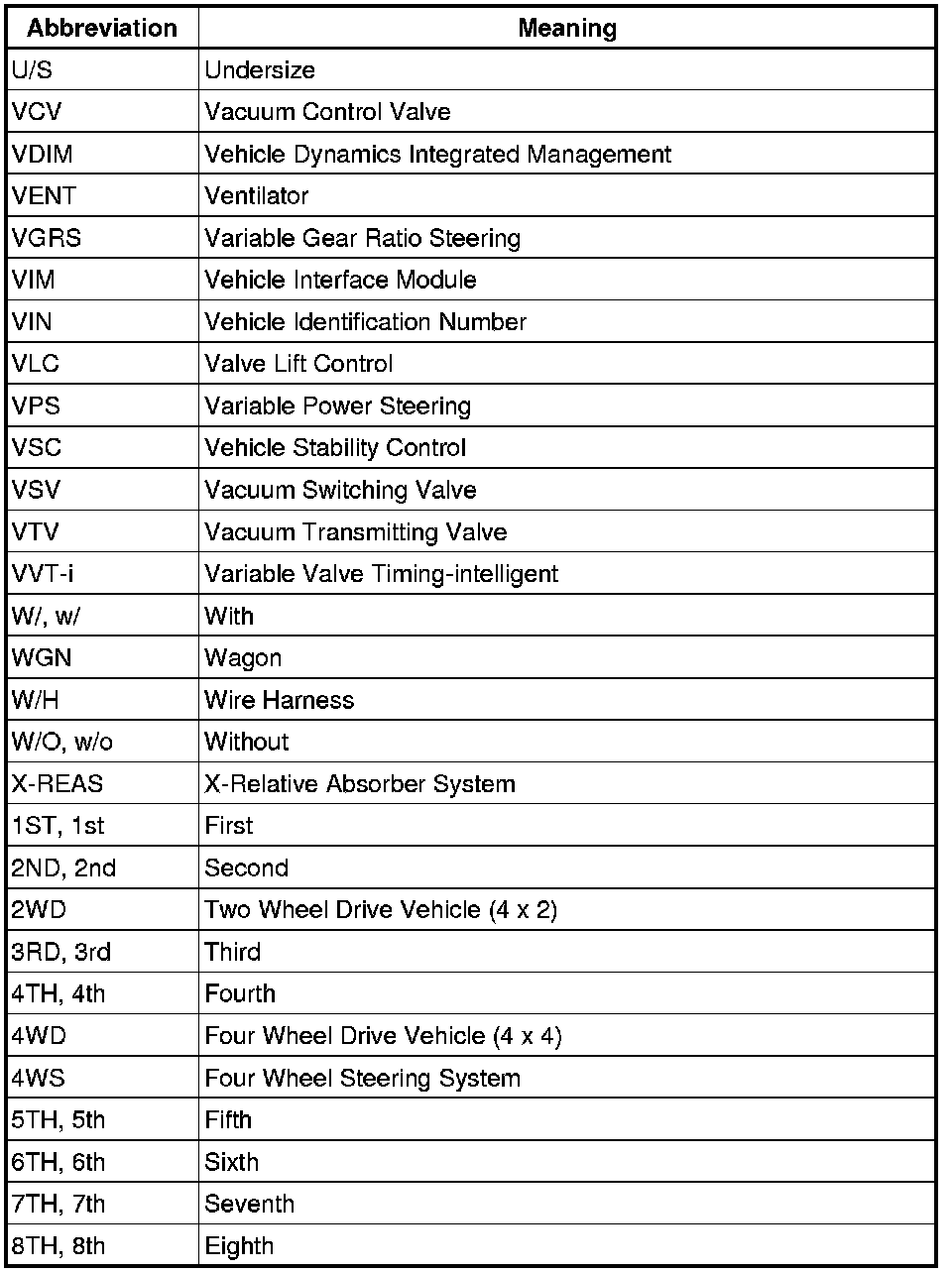 Terms - Abbreviations Used In Service Procedures
