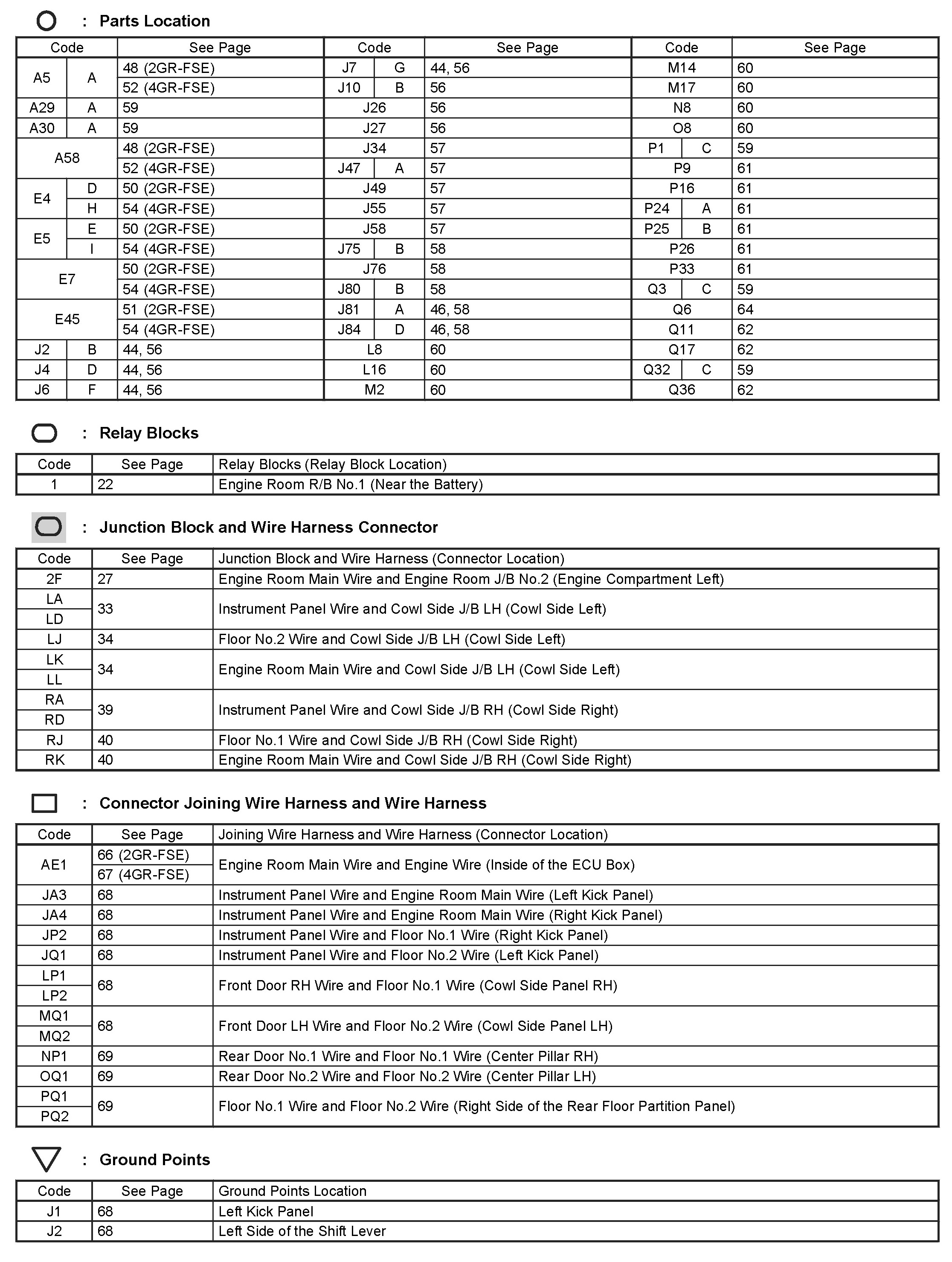 Locations: The locations of components, connectors, ground points, and splices referred to within these diagrams can be found at Vehicle Locations. Locations