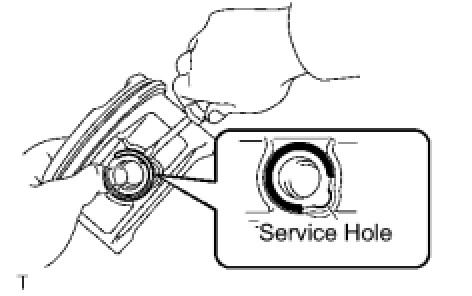 Be sure that the end gap of the snap ring is not aligned with the pin hole cutout portion of the piston.