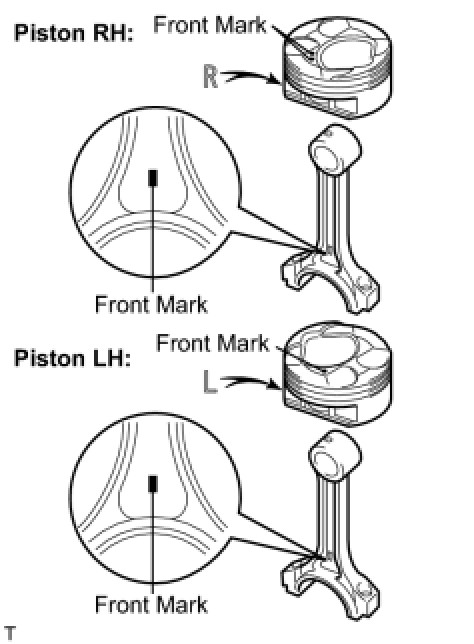 (d) Check that the front mark of the connecting rod cap is facing forward.