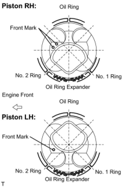 (b) Position the piston rings so that the ring ends are as shown in the illustration.