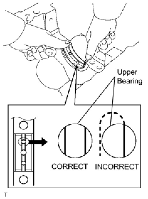 (1) Install the upper bearings to the cylinder block as shown in the illustration.