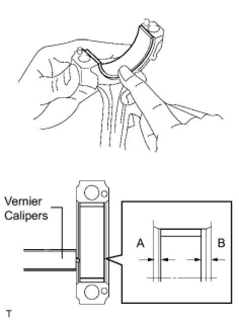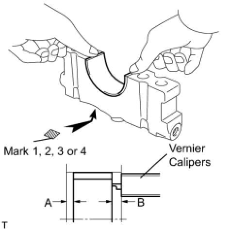 (2) Using vernier calipers, measure the distance between the bearing cap's edge and the lower bearing's edge.