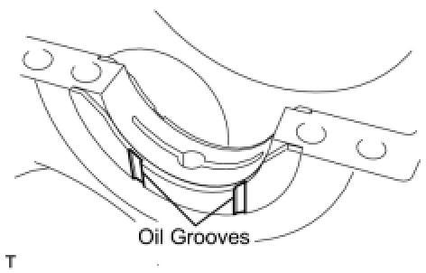* Both sides of the oil groove in the cylinder block should be visible through the oil feed holes in the bearing. The amount visible on each side of the holes should be equal.