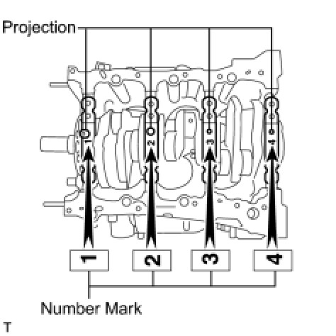 (b) Confirm the projection and numbers of the main bearing caps and install the bearing caps on the cylinder block.