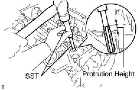 (d) Using SST, tap in new valve guide bushes to the specified protrusion height.