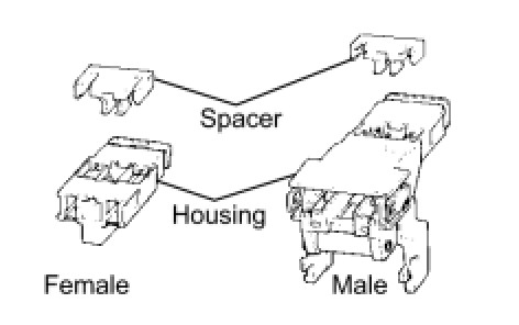 All connectors with a terminal twin-lock mechanism have a two-piece component consisting of a housing and a spacer. This design enables the terminal to be locked securely by two locking devices (the retainer and the lance) to prevent terminals from coming out.