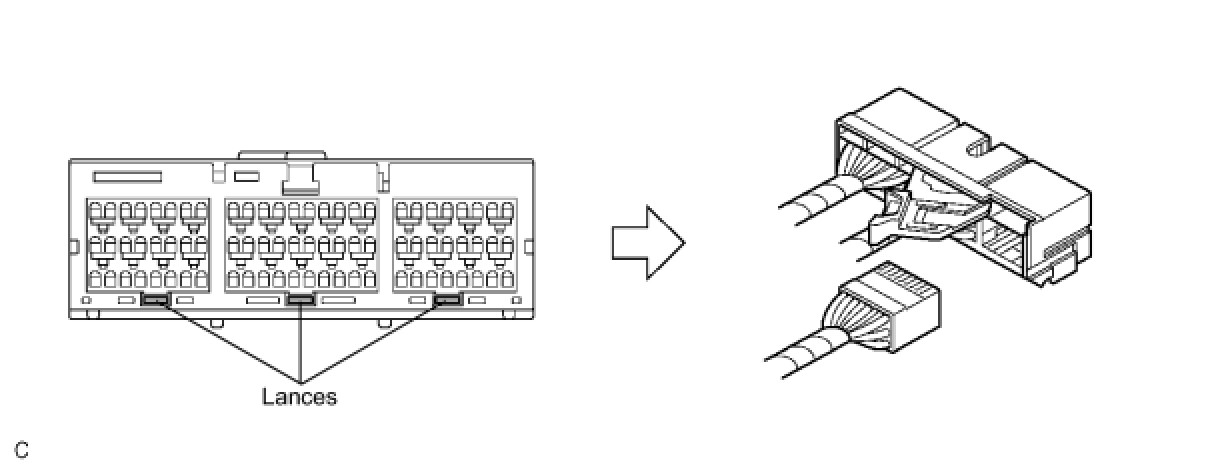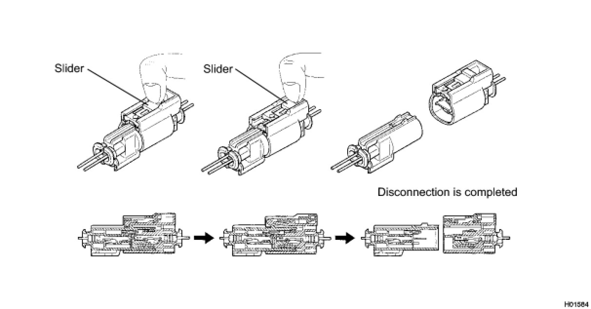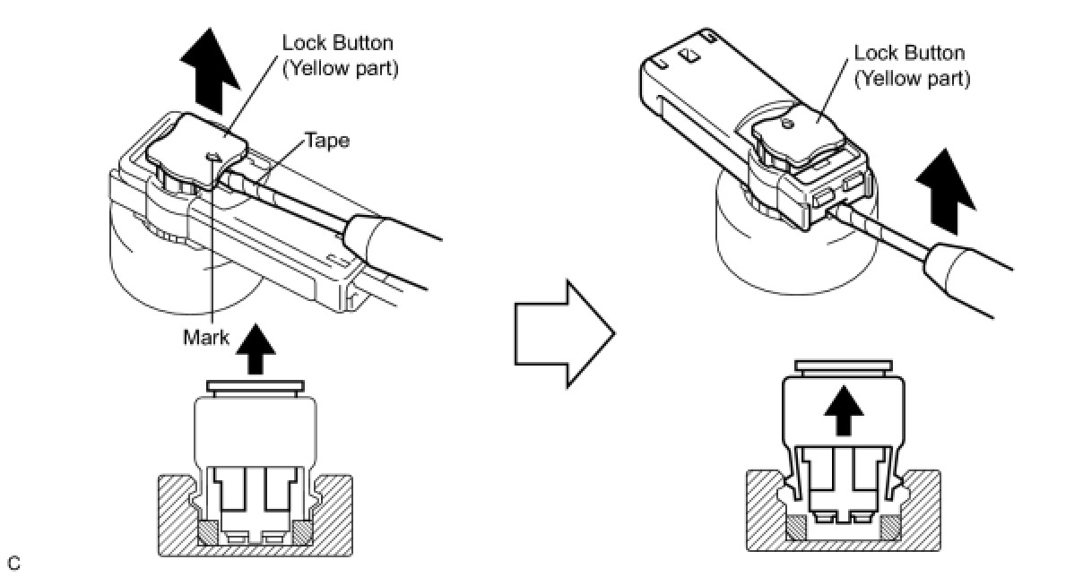 (c) After disconnecting the connector, check that the position of the housing lock (white part) is as shown in the illustration.