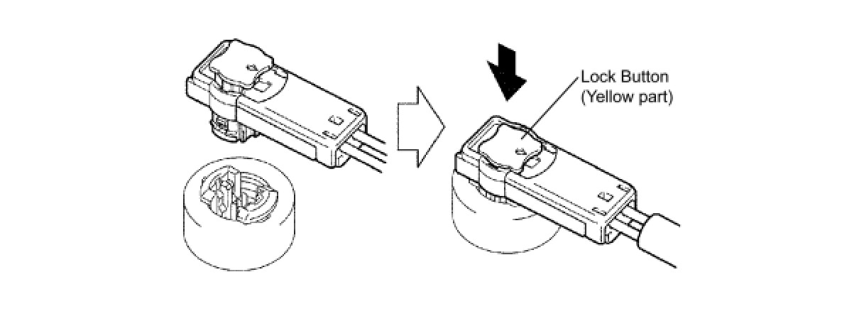 (b) Push down securely on the lock button (yellow part) of the connector (When locking, a click sound can be heard.)