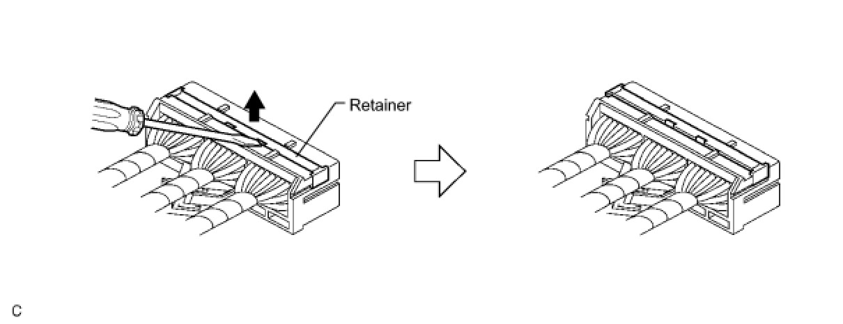 (1) Using a screwdriver, unlock the retainer.