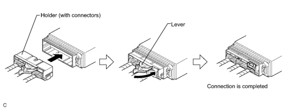 (a) Connect the connector as shown in the illustration (When locking, make sure that the outer returns to its original position and a click sound can be heard).