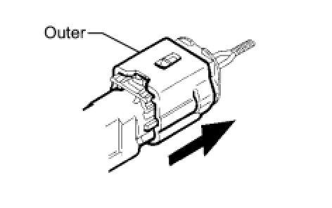 (a) While holding the sides of the outer connector locking sleeve, slide the outer in the direction shown by the arrow.