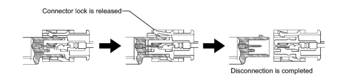(b) When the connector lock is released, the connectors are disconnected.