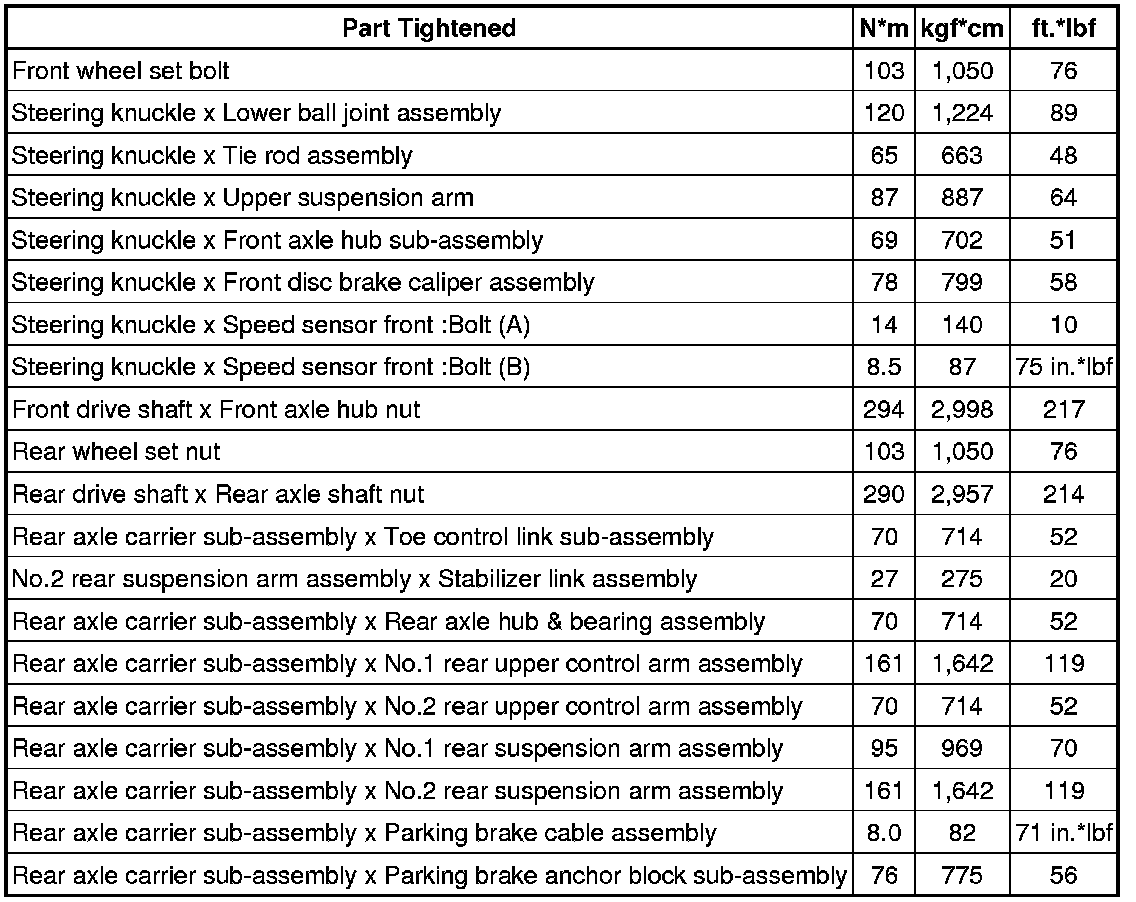 SERVICE SPECIFICATIONS: AXLE: TORQUE SPECIFICATIONS