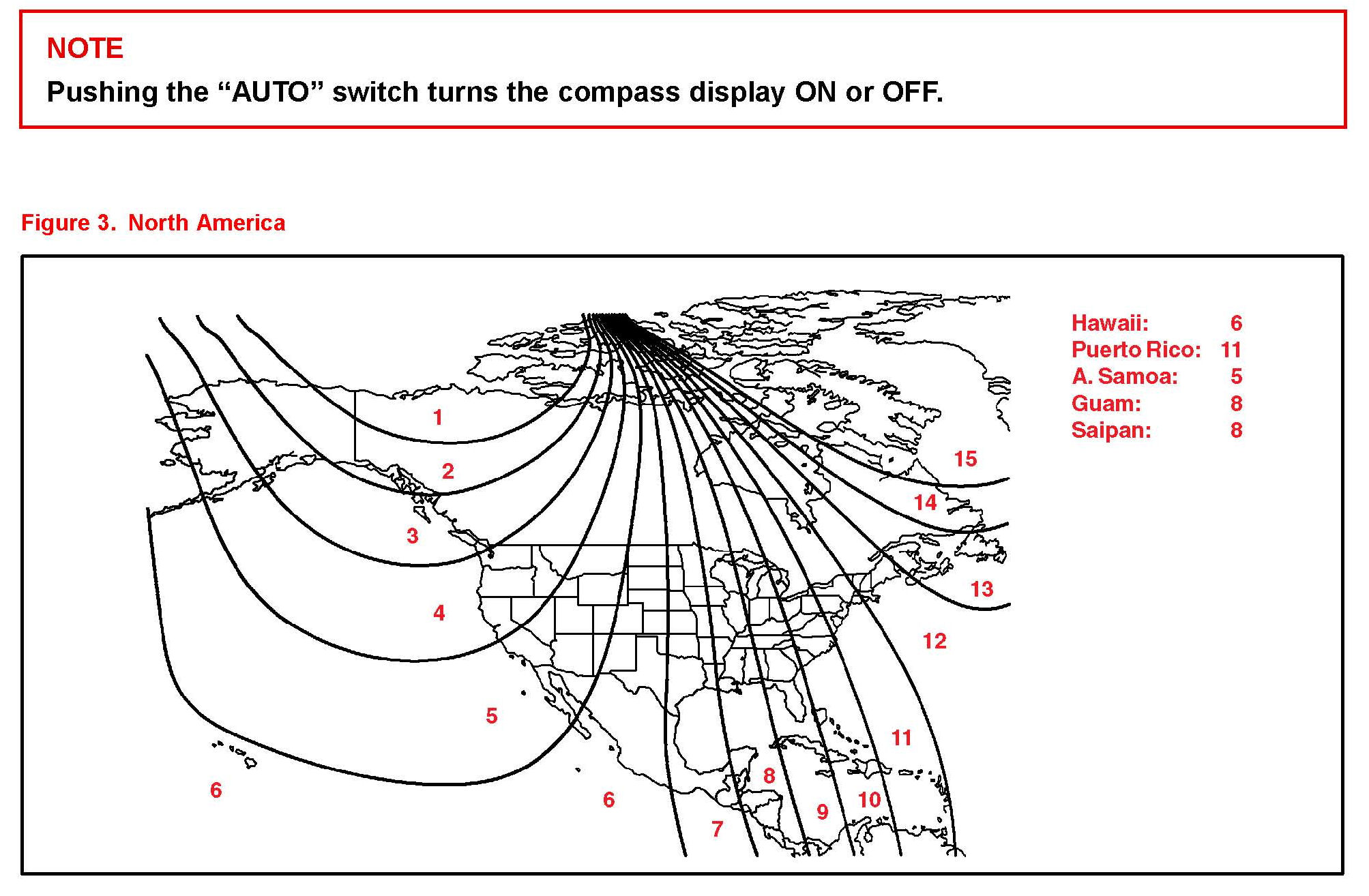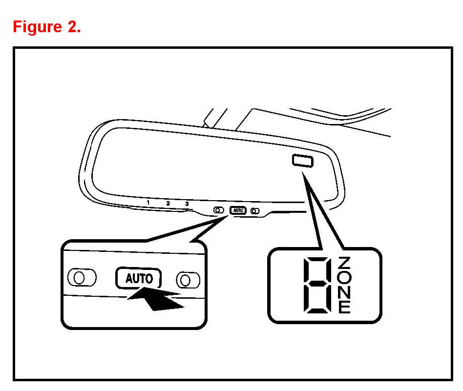 2. Push and hold the "AUTO" switch for approximately 6 seconds until the zone number (1 - 15) appears on the display. Then push the switch to select the number of the zone where the vehicle is located.
