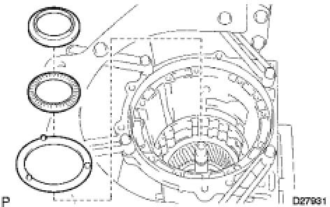 (a) Remove the center planetary gear assembly, the planetary sun gear and the No. 4 thrust bearing race from the transmission case.