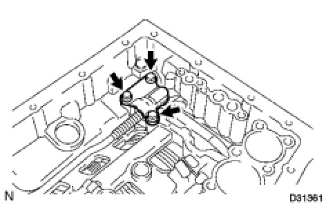 (b) Install the valve body oil strainer assembly with the 4 bolts.