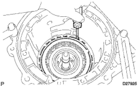 (b) Shift the manual valve lever to the P position, and confirm that the rear planetary gear assembly is correctly locked up by the parking lock pawl.
