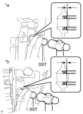 (a) Using SST and a hammer, drive in 2 new oil seals.