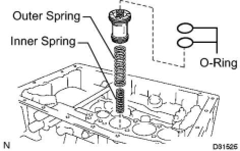 (a) Install the 2 springs and the B-1 accumulator valve to the hole.