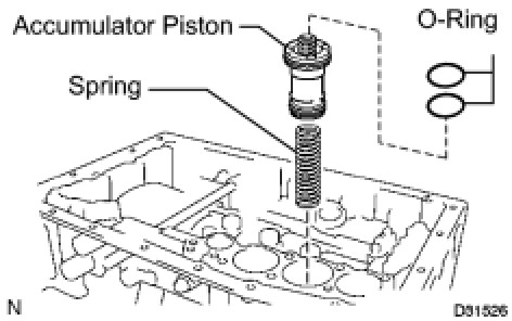 (a) Coat 2 new O-rings with ATF, and install them to the C-2 accumulator piston.