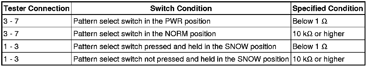 A760H AUTOMATIC TRANSMISSION: PATTERN SELECT SWITCH: INSPECTION
