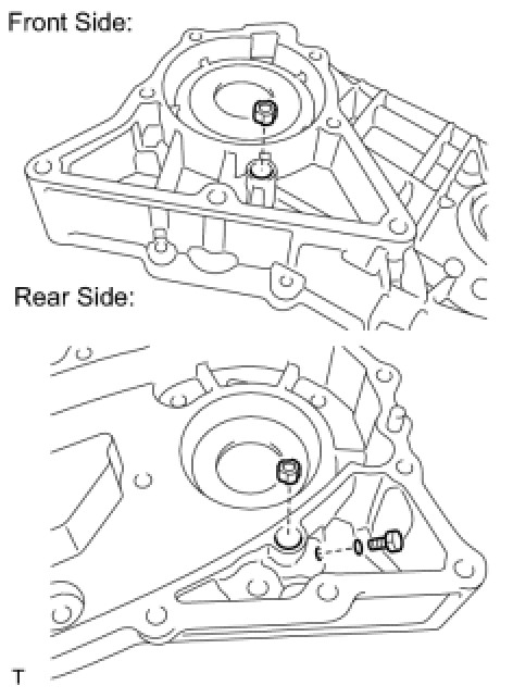 (e) Install the 2 gaskets and screw to the front transfer chain case.