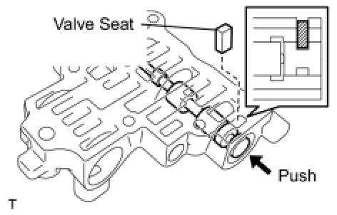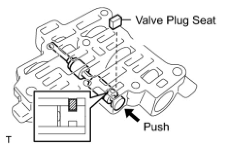 (b) While pushing on the center differential control valve plug, install the center differential clutch control valve seat on the transfer upper valve body.