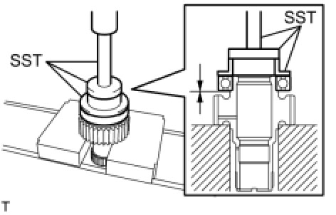 (a) Using SST and a press, install a new transfer driven sprocket bearing to the transfer front driven clutch sleeve.
