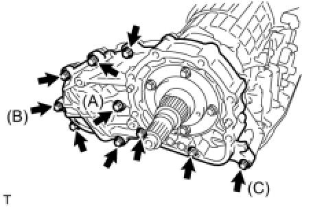 (c) Apply seal packing to the transfer chain case front as shown in the illustration.