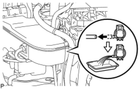 (a) Remove the washer hose from the windshield washer motor and pump assembly, and drain the washer fluid.