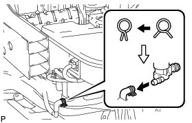 (b) Loosen the clip and disconnect the headlight cleaner hose.