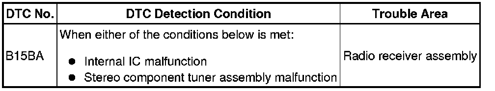 This DTC is stored when a malfunction occurs in the radio receiver assembly.