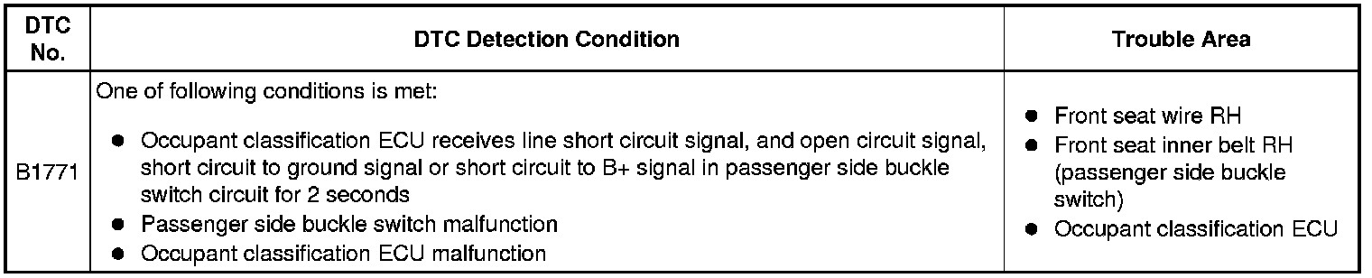 SUPPLEMENTAL RESTRAINT SYSTEM: OCCUPANT CLASSIFICATION SYSTEM: B1771: Passenger Side Buckle Switch Circuit Malfunction