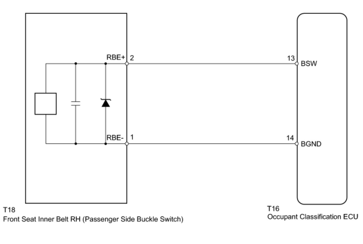 The passenger side buckle switch circuit consists of the occupant classification ECU and the front seat inner belt RH.