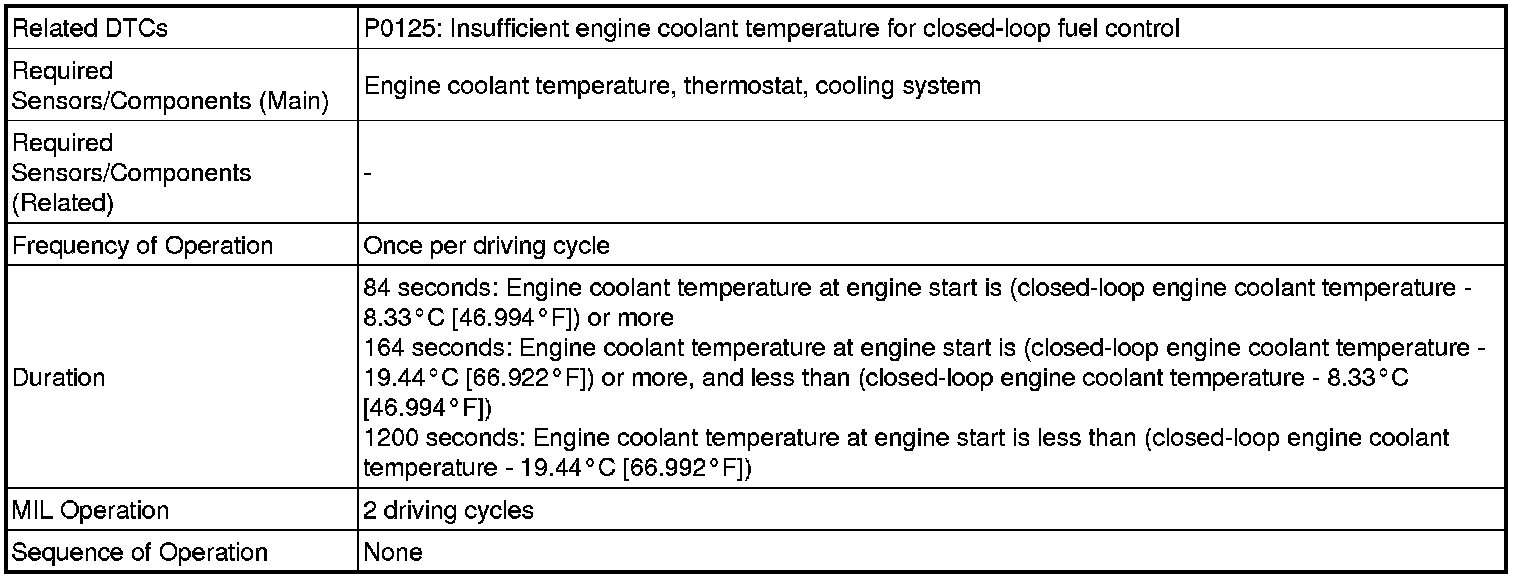 4GR-FSE ENGINE CONTROL SYSTEM: SFI SYSTEM: P0125: Insufficient Coolant Temperature for Closed Loop Fuel Control
