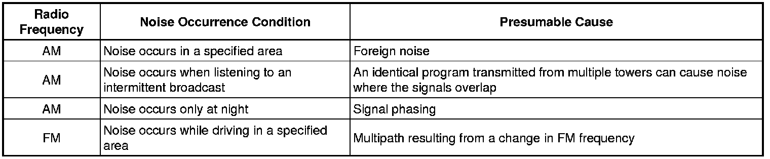 Technicians must have a clear understanding about each customer's noise complaint. Use the following table to diagnose noise problems.