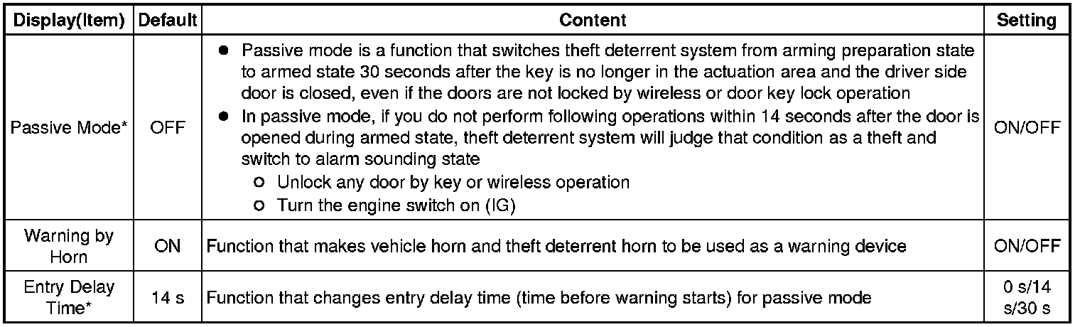 THEFT DETERRENT / KEYLESS ENTRY: THEFT DETERRENT SYSTEM: CUSTOMIZE PARAMETERS