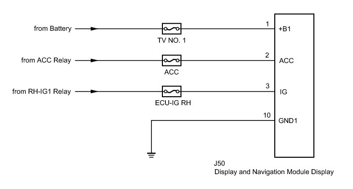 NAVIGATION / MULTI INFO DISPLAY: NAVIGATION SYSTEM (for DVD): Navigation ECU Power Source Circuit