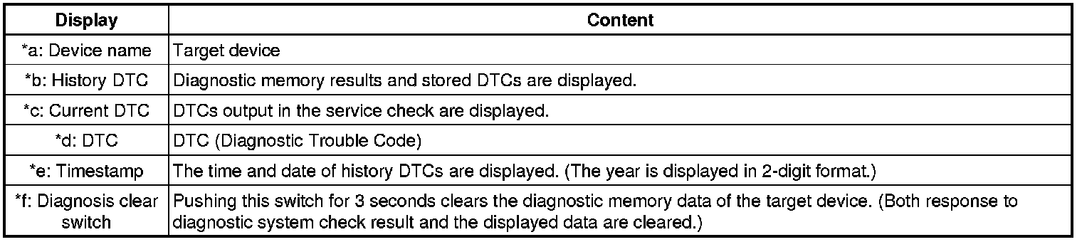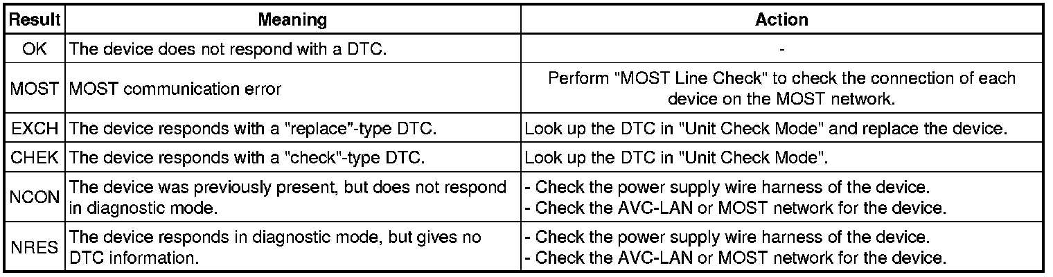 * The device name and result will not be displayed if there is no system registration record and no response for the connection check during the MOST line check even if the device is connected to the MOST network.