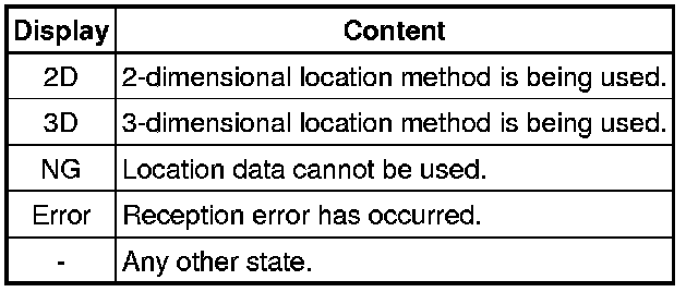 Information from a maximum of 12 satellites is displayed on the screen. This information includes the target GPS satellite number, elevation angle, direction and signal level.