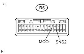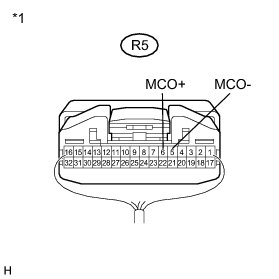 (e) Connect an oscilloscope to terminals 6 (MCO+) and 5 (MCO-) of the R5 map light assembly connector.